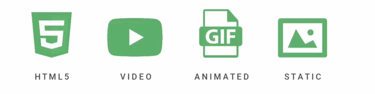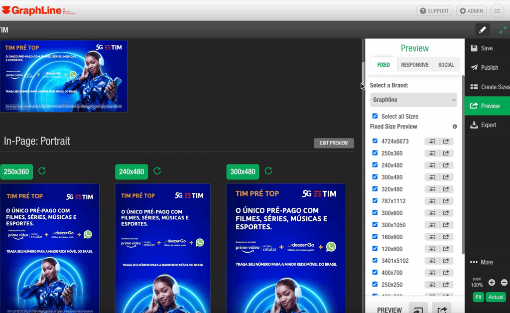 Economize tempo produzindo em escala, vários formatos e exportando o mesmo arquivo de alta qualidade em PNG, JPG, HTML5, Vídeo MP4, GIF animado e responsivo.